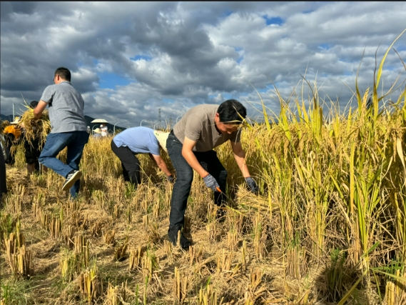 金秋時(shí)節(jié),稻谷飄香,又是一年豐收季。為深入貫徹落實(shí)黨的二十大、黨的二十屆三中全會(huì)精神,慶祝新中國75周年華誕,進(jìn)一步發(fā)揮黨員干部在保障糧食安全,助農(nóng)秋收等工作中走在前、作表率的作用,9月30日下午,龍巖市國資委機(jī)關(guān)黨支部、龍巖市政集團(tuán)黨支部、龍巖設(shè)計(jì)院圖審公司聯(lián)合黨支部組織全體黨員前往龍洲濕地水稻試驗(yàn)田開展“金秋時(shí)節(jié)收割忙 黨旗飄揚(yáng)稻花香”主題黨日活動(dòng),共同助力水稻收割工作。