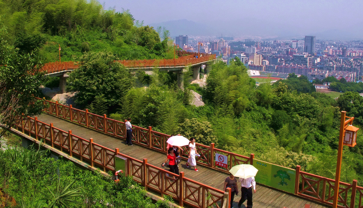 蓮花山底南環(huán)路地面標(biāo)高為330米,山頂標(biāo)高為490.606米,山高160米左右,山頂已開發(fā)為休閑場(chǎng)所,并建有世紀(jì)鐘樓,山腳可挖掘的景點(diǎn)不多,因此決定在半山腰開辟一條市民休閑的木棧道,將公園增加一個(gè)休閑觀光的好場(chǎng)所,并可成為蓮花山一道亮麗的風(fēng)景線。因此在半山腰422米高程建設(shè)一條環(huán)山的木棧道。為盡量少破壞山體植被,木棧道采用棧道橋形式,全長(zhǎng)3781.88米,全寬3.5米(包括欄桿寬度),凈寬3.0米,蓮花山棧道橋工程總投資7610萬元。