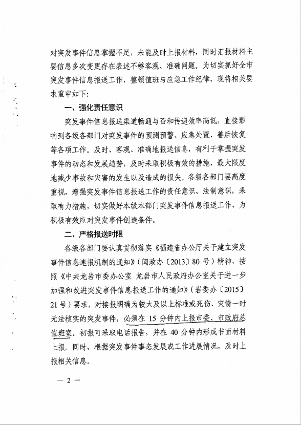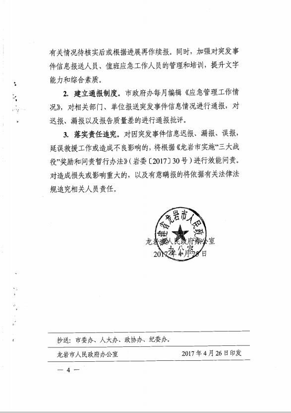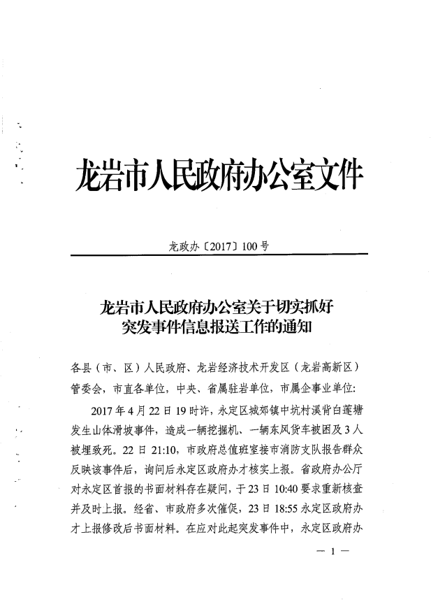 1. 市政府辦關(guān)于切實(shí)抓好突發(fā)事件信息報(bào)送工作的通知(龍政辦【2017】100號(hào))